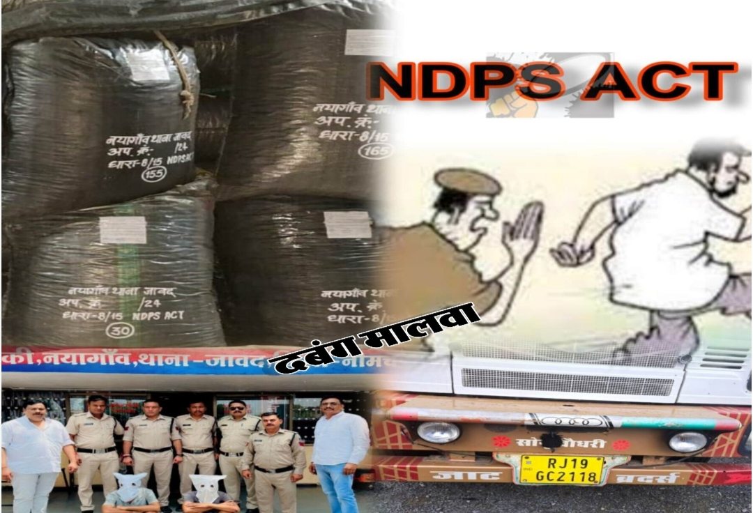 नीमच। माननीय मुख्यमंत्री के प्रदेश व्यापी नशाविरोधी अभियान के तहत जिला पुलिस अधीक्षक, जिला नीमच अंकित जायसवाल व अतिरिक्त पुलिस अधीक्षक नवलसिंह सिसौदिया एवं अअपु जावद सुश्री निलेश्वरी डाबर के मार्गदर्शन में थाना प्रभारी जावद निरीक्षक जितेन्द्र वर्मा के नेतृत्व में चौकी प्रभारी नयागांव रामपालसिंह राठौर की टीम के द्वारा अवैध मादक पदार्थ तस्करी एवं नशे के विरूद्ध चलाये जा रहे विशेष अभियान के अंतर्गत कुल 33 क्विंटल अवैध मादक पदार्थ डोडाचूरा व टाटा ट्रक क्र. आर.जे.-19-जीसी-2118 सहित 02 आरोपीयों को पकडने में सफलता प्राप्त की है। नयागांव पुलिस द्वारा बताया गया कि दिनांक 17.08.2024 की शाम अवैध मादक पदार्थ की धरपकड व नाकाबंदी हेतु नीमच-निम्बाहेडा हाईवे फोरलेन तुलसी होटल के सामने कानका फन्टा पर मुखबिर सूचना पर अवैध मादक पदार्थ डोडाचूरा टाटा ट्रक क्र. आर.जे.-19-जीसी-2118 से नीमच से राजस्थान तरफ जाने वाला है को आते दिखा जिसको हमराह फोर्स की मदद से रोका व नीमच-निम्बाहेडा हाईवे फोरलेन तुलसी होटल के सामने ग्राम कानका मार्ग यातायात मार्ग अवरूद्ध होने व खराब मौसम तथा सुरक्षा की दृष्टि से संदेही टाटा ट्रक क्र. आर.जे.-19-जीसी-2118 की तलाशी पुलिस चौकी नयागांव परिसर में चैक करते ट्रक की बॉडी के ऊपर व ट्राले के पीछे की तरफ यूरिया खाद के कट्टों के नीचे स्कीम में 165 काले रंग के प्लास्टिक के कट्टों में कुल 33 क्विंटल अवैध मादक पदार्थ डोडाचूरा को एनडीपीएस एक्ट के अज्ञापक प्रावधानों का पालन करते हुए वाहन के चालक 1. ओमप्रकाश पिता सुखाराम विश्नोई निवासी ग्राम सउओ की ढाणी रामडावास कलॉ थाना डांगियावास तहसील पिपाडसिटी जिला जोधपुर (राजस्थान), 2. विक्रम पिता सवाईराम बिश्नोई निवासी ग्राम सउओ की ढाणी रामडावास कलॉ थाना डांगियावास तहसील पिपाडसिटी जिला जोधपुर (राजस्थान) के कब्जे से जप्त कर मौके से गिरफ्तार कर वाहन चालक व उसके साथी के विरूद्ध धारा 8/15 एनडीपीएस एक्ट के तहत अपराध कायम कर विवेचना में लिया गया है। ज्ञात हो कि पूर्व मे आरोपी विक्रम विश्नोई का भाई राजूराम विश्नोई पूर्व मे एनडीपीएस केस मे मंदसौर जेल मे बंद है। उक्त प्रकरण में अनुसंधान जारी है। उक्त कार्यवाही में पुलिस टीम नयागांव का सराहनीय योगदान रहा।