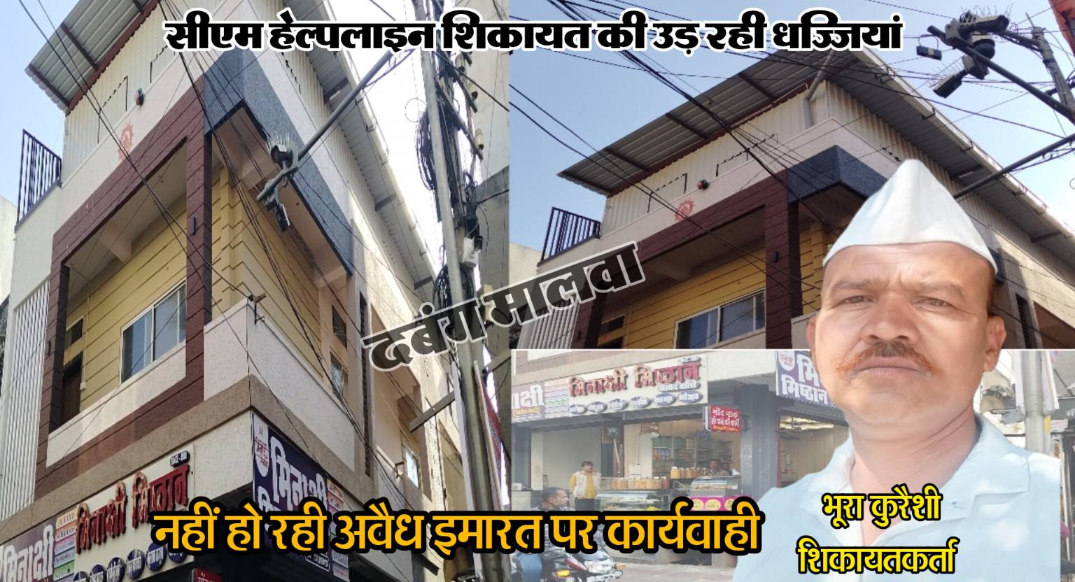 नीमच। शहर में कई भामाशाहों ने अवैध तरीके व बिना अनुमति से अपनी इमारतो का निर्माण कर नियमों की धज्जियां उड़ाते दिख रहे हैं। जिस ओर जिम्मेदार अधिकारी कान में रुई और आंख पर पट्टी बांध बैठे हैं। कार्यवाही के नाम पर बस लीपापोती कर दी जाती हैं। एक ओर जहाँ प्रदेश सरकार अवैध कार्य करने वालो पर तंज कसती दिख रही हैं वही दूसरी ओर कुछ अधिकारी अपना हित साधते हुए अवैध निर्माण पर कोई कार्यवाही नही करते। वही एक ऐसा ही मामला शहर के व्यस्ततम मार्ग चूड़ी गली का सामने आया हैं। जिसमें मानव अधिकार मंच जिलाध्यक्ष भूरा कुरैशी ने बताया कि वार्ड नम्बर 19 बोहरा गली के सामने चूड़ी गली में मुख्य मार्ग पर अवैध तरीके से बिल्डिंग का निर्माण किया हुआ है। जिसमें एमओएस का उल्लंघन कर बिना अनुमति बेसमेंट निर्माण किया हुआ है। जिसकी शिकायत श्री कुरेशी ने लंबे समय से सीएम हेल्पलाइन पर की हुई हैं। जिसका आज दिनांक तक कोई निराकरण नहीं हुआ। भूरा कुरैशी ने बताया कि नगर पालिका द्वारा उक्त अवैध इमारत पर कोई कार्यवाही नही की जा रही हैं जबकि नपा अधिकारी कर्मचारी को अवैध इमारत की जानकारी है। वही शिकायत उठाने का दबाव भी बनाया जाता हैं। ऐसे में नपा भ्रष्टाचार का भेंट चढ़ अवैध निर्माण पर कोई कार्यवाही नही करती हैं। वही उक्त अवैध इमारत के निर्माण में आम रास्ते पर भी अतिक्रमण कर लिया गया हैं। उक्त अवैध इमारत से कभी भी जन हानि होने की संभावना हैं। जिस ओर नपा के जिम्मेदारों का कोई ध्यान नही हैं। शहर में कई ऐसी बहुमंजिला इमारते बनी हुई हैं। जिससे नपा अवैध वसूली कर कोई कार्यवाही नही करती हैं। वही भूरा कुरैशी की मांग हैं कि वार्ड नम्बर 19 में स्थित अवैध इमारत को गिराया जाए ओर इमारत मालिक पर कार्यवाही की जाए।